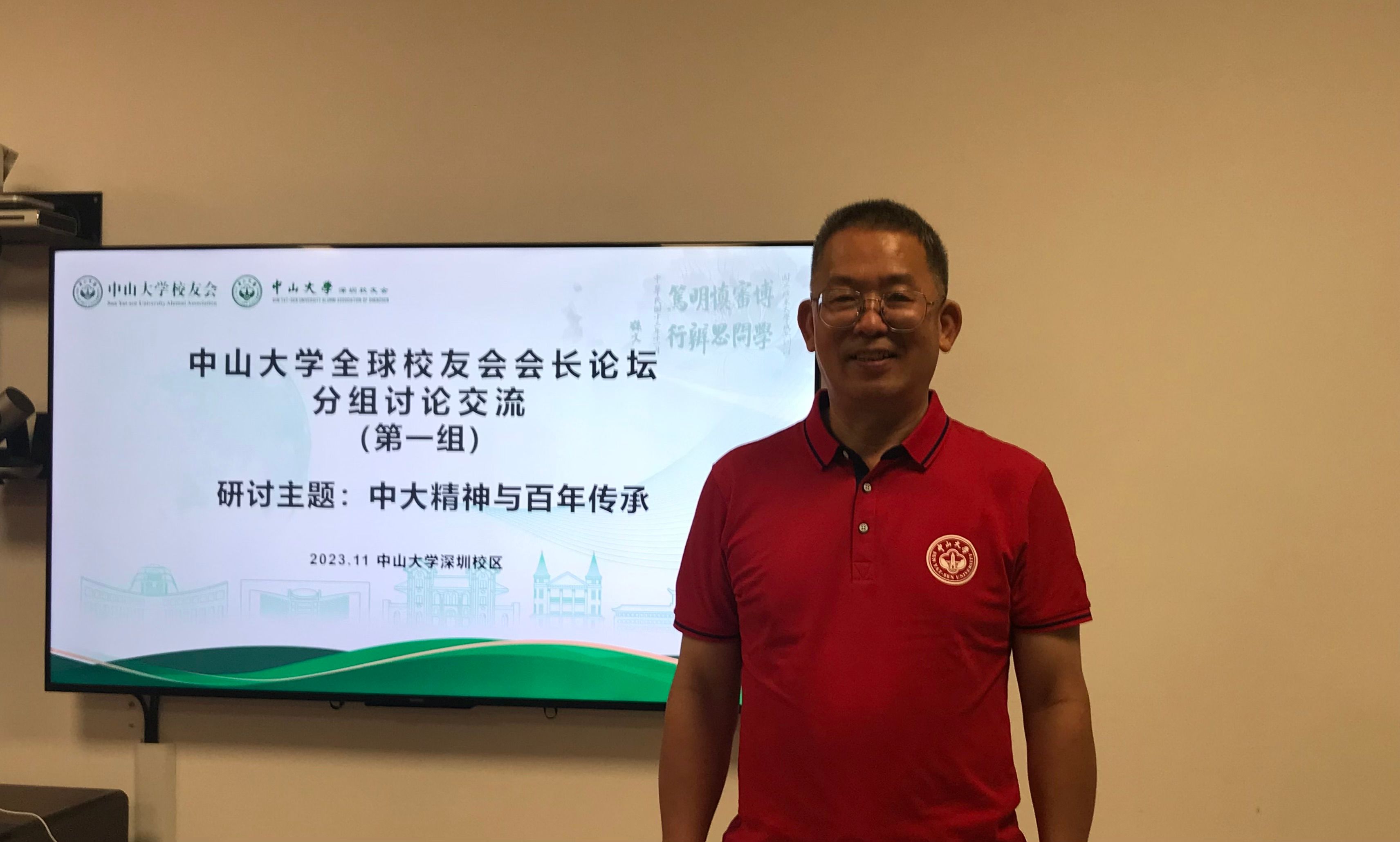 “中大精神包含:开放、包容、务实和拼博,是中山大学历史与文化的延续,也是海内外校友共同的精神家园。在新时代下,各地校友应该继续秉持发扬和传承中大精神,为国家和社会培养更多优秀人才贡献自己的力量。”,并在当天下午的全体会议上,代表小组发言。